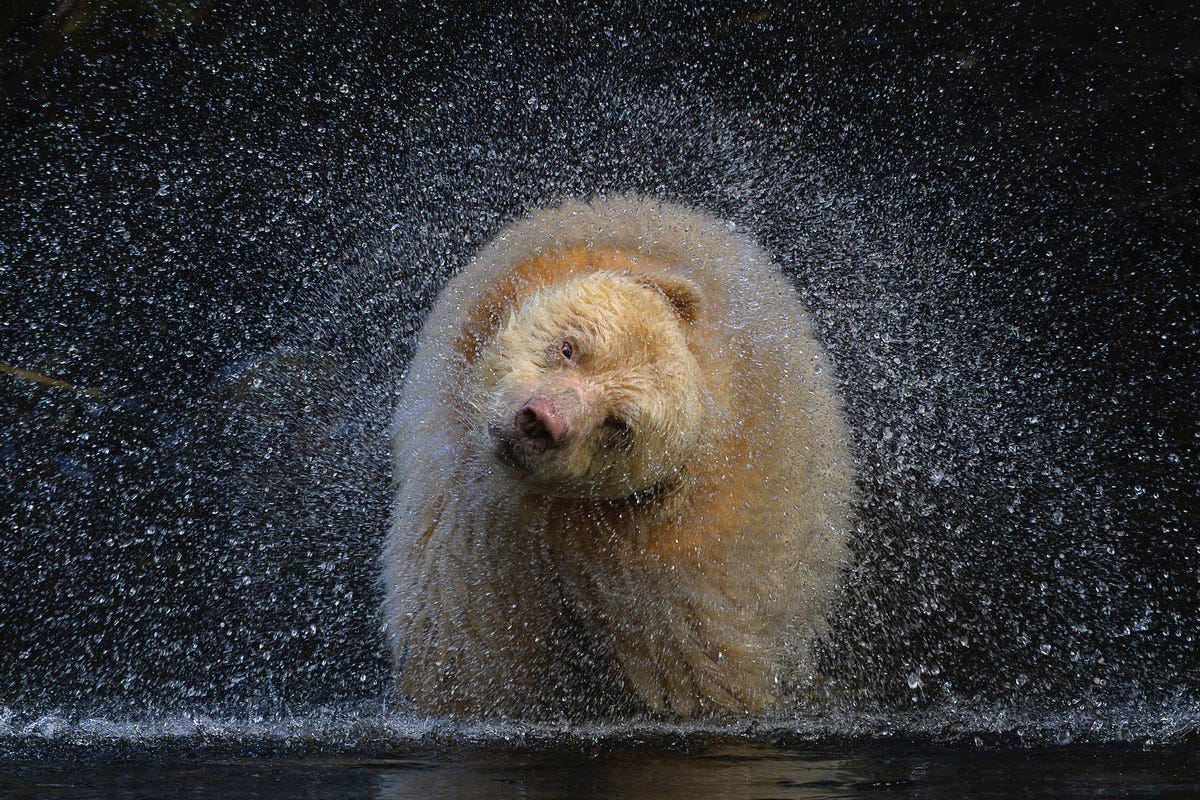 La cosa più bella che vedrai questo weekend? Un orso kermode, detto anche “orso spirito”, che si scrolla di dosso l’acqua di un fiume della British Columbia, Canada. La foto, scattata da Michelle Valberg, ha vinto il concorso BigPicture Natural World Photography. Qui una gallery con altre foto premiate.